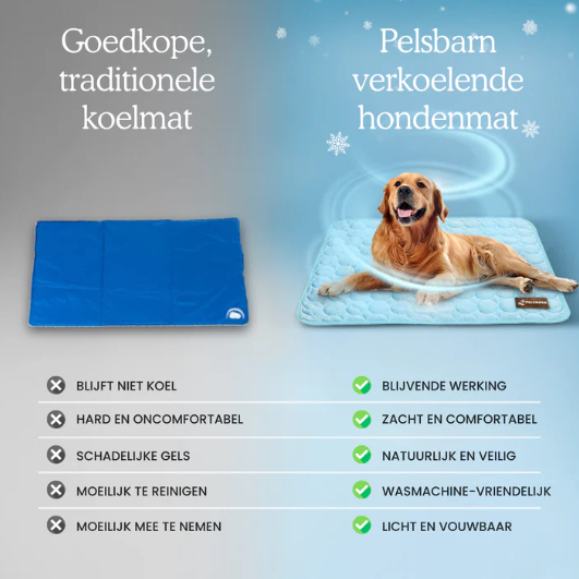 Wanneer je hond op de verkoelende hondenmat van Pelsbarn gaat liggen , kan hij binnen een aantal minuten 2 tot 4 graden afkoelen . Hierdoor is het veilig in gebruik en zal de lichaamstemperatuur van je hond geleidelijk verlagen